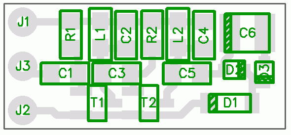 Z důvodu práce s mikrovlnnými signály jsou všechny součástky typu SMD a stejně tak je potřeba použít všechny (především pak L1, C2, L2, C4) s maximálně 2% tolerancí.